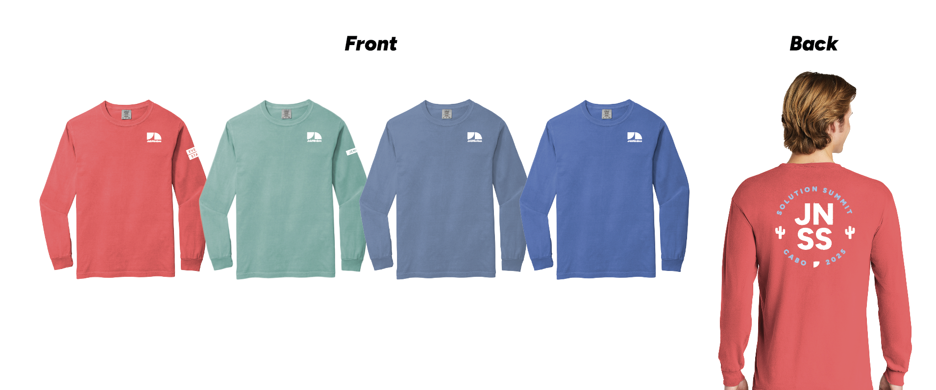 Natural imagery, a looser energy, and a brighter, sun-soaked palette gave the event its own sense of place. The centerpiece of that palette was JN Watermelon, a new color we now use exclusively for JNSS. The new identity stretched across every touchpoint: logo and visual system, event materials, signage, digital assets, swag, and stage and environmental design, all cohesive, all intentional.